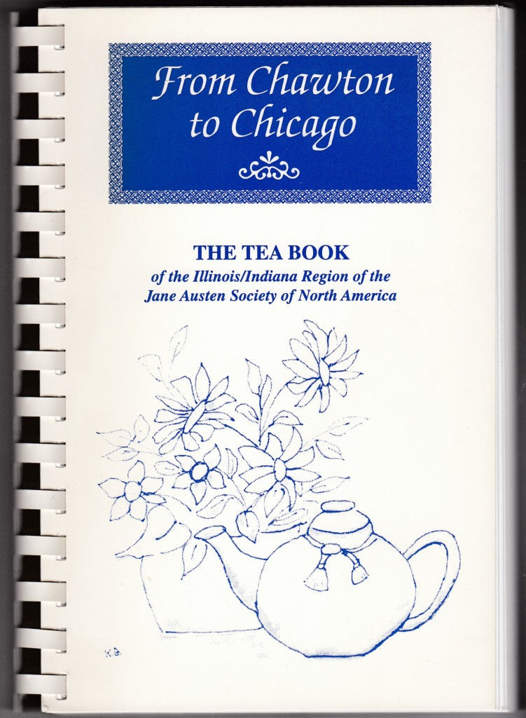 "The Tea Book of the Ilinois/Indiana Region of the Jane Austen Society of North America." This book was created in the 1990's to help fund the Illinois/Indiana Region's Educational Outreach Program. Sixty contributors fill this 170 page book with recipes divided into sections for tea; sandwiches; scones, quickbreads & muffins; cakes; cookies; pies, tarts and other desserts; heartier fare; sweet spreads. The book is spiral bound and stays open on one page easily for best cooking. With an introductory chapter on The Fundamentals of Tea and a page of helpful hints with each chapter. JASNA IL/IN. nd. 1995? USED. $12.00
