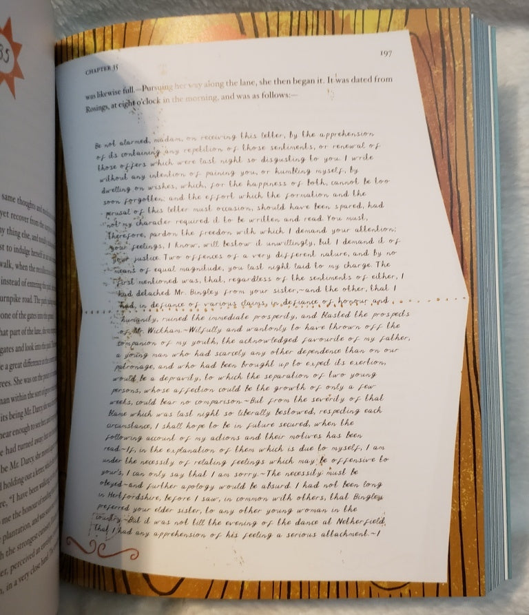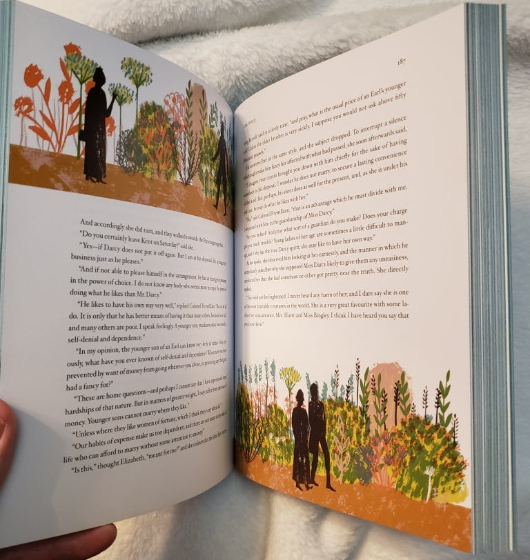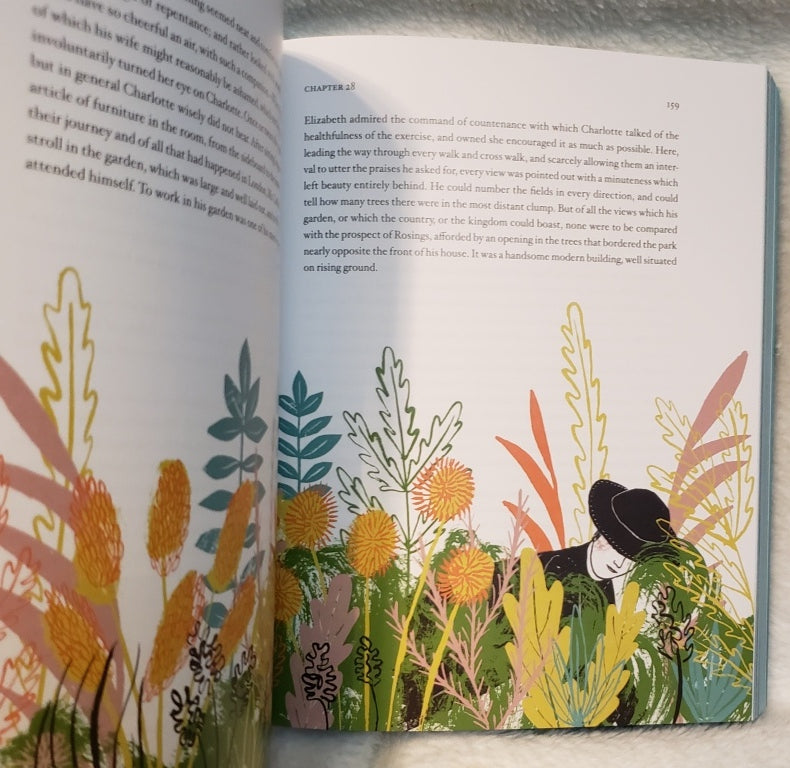 Classics Reimagined. Illustrated by Alice Pattullo. Gorgeous illustrations in bright modern colors really bring P&P to life. Page edges heavily tinted, and lots of extra touches. Letters are printed in script with gorgeous borders. Pretty end pages are printed in luscious wallpaper patterns. Humorous, whimsical, and entertaining, a true reimagining. Stiff paper. 371 pages. Rockport. 2015. Paper. NEW. $14.00