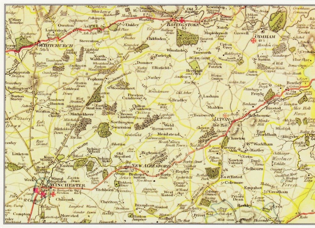 Large Post Cards of Jane Austen's Hampshire. Map such as she might have seen in her lifetime. Includes Basinstoke, Winchester, Alton, Chawton, Overton, Ash, Steventon. The Woody Card Co., The Timaru Collection. UK. NEW. $4.00 each.