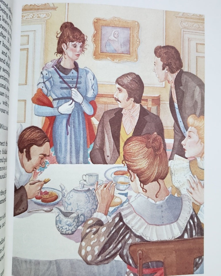 Illustrated Junior Library. Illustrated by Julie Downing. Lovely brightly colored illustrated cover. Page edges stained green. Wonderful color and b/w art throughout. Some features of the illustrations are dead-on, some are Victorian (gas lamps for example). All edges of this copy are worn. The illustrations are still in great shape. Grosset & Dunlap, NY, 1984. USED. $15.00